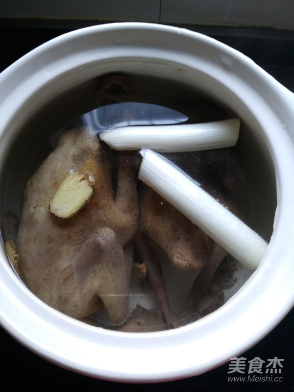 加入蔥段姜片中大火煮開,中小火燉煮。