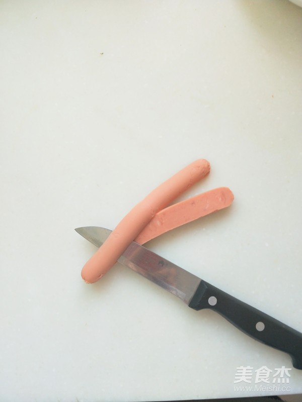 用牙簽把尾部連起來,盡量切均勻哦,我這一頭大一頭小的,心形有些變形了。