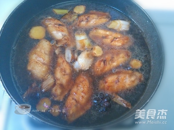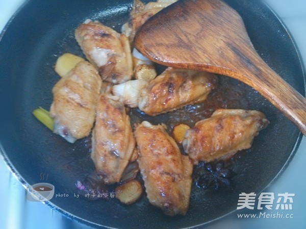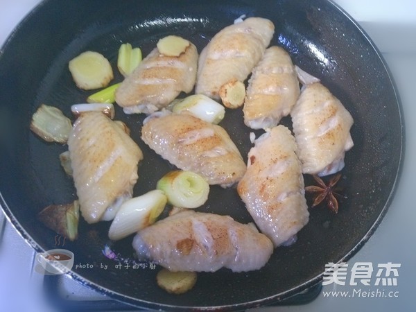 鍋里加入少許油,放入生姜、大蔥、八角炒香