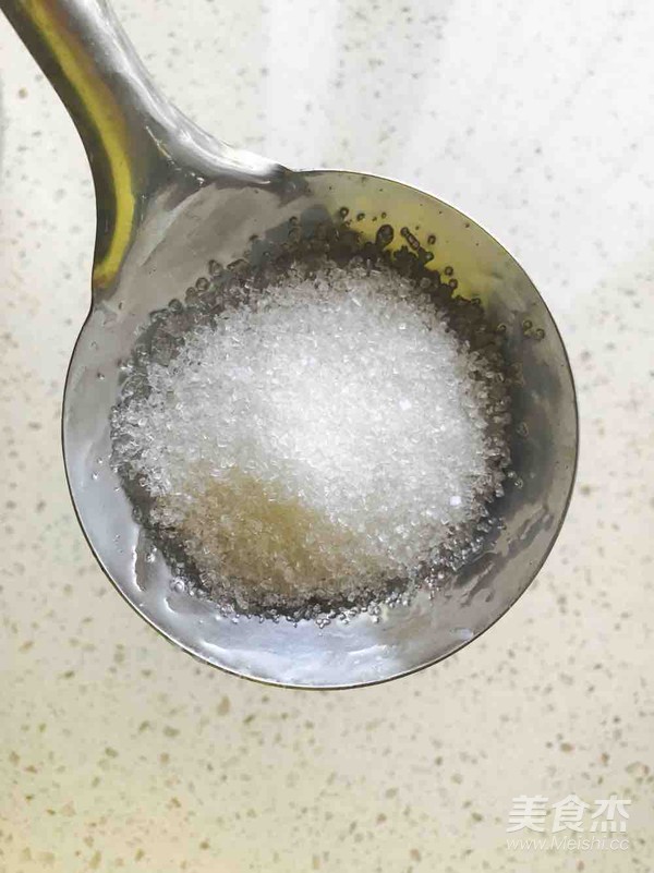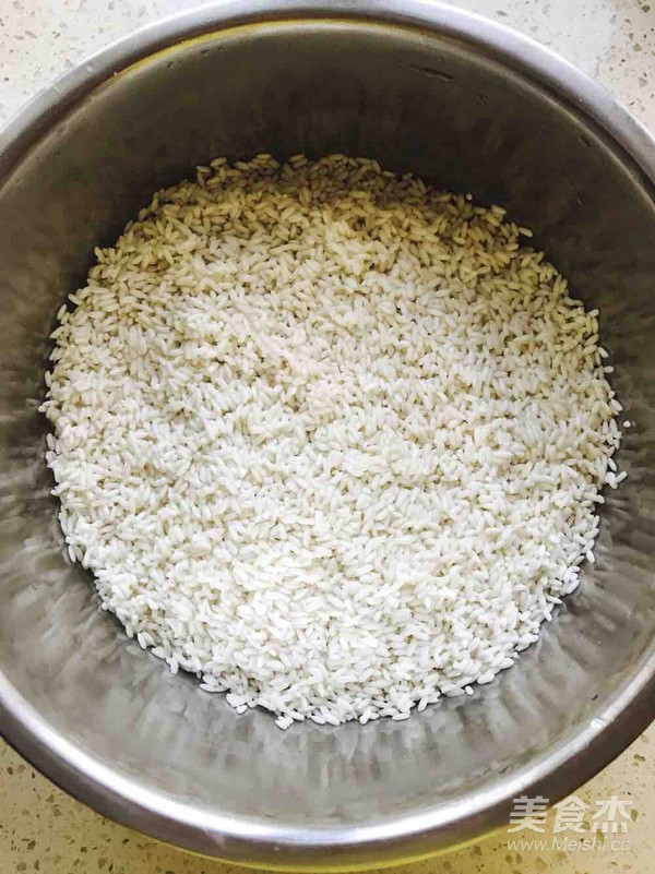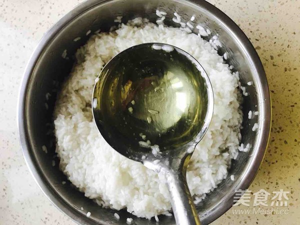 5.在糯米中加入適量的的糖,想吃甜點的可以多放點,進行攪拌。