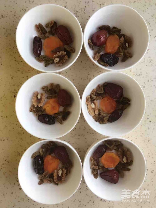 紅棗盡量要肉多的,多泡一會,泡軟點。切開放入碗中會更好。杏脯一定要多洗幾遍。