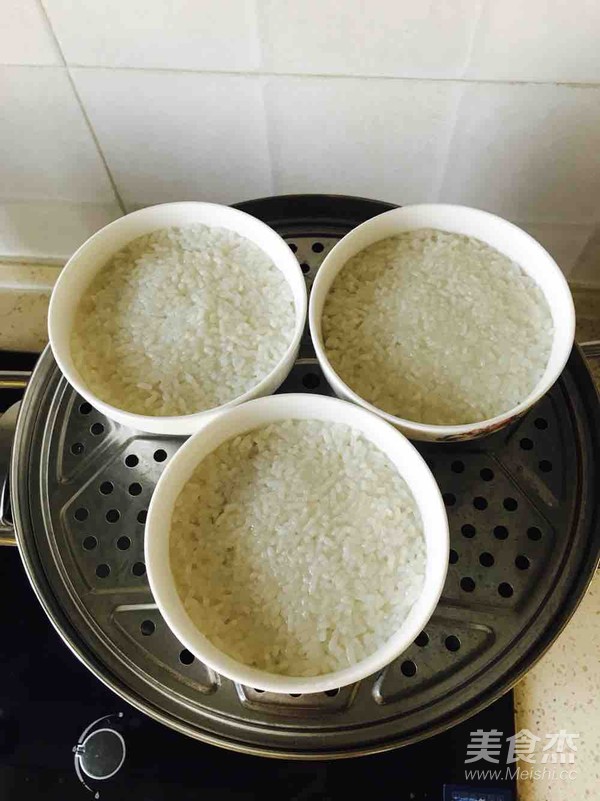 12.取出蒸好的八寶飯,倒入盤中,小心燙手。