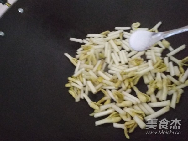 先將花生苗放鍋中炒熟,加食鹽、白糖調味