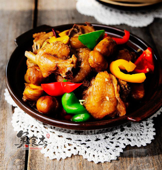 13.燉至雞肉和板栗熟透,大火收汁,加入彩椒翻炒均勻即可出鍋。