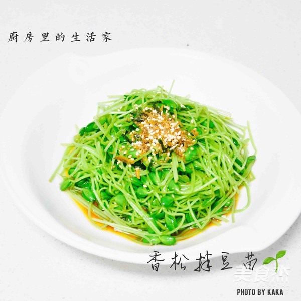 豆苗過一下冷水,淋上日式醬油,撒上香松,即完成