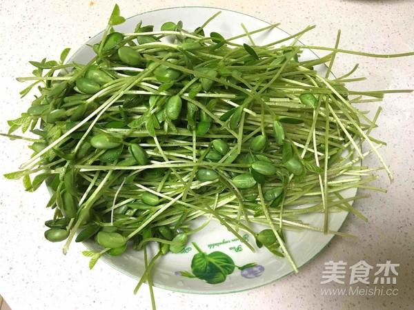 鍋中燒開水,把豆苗放入,加一點鹽,豆苗變軟即撈出