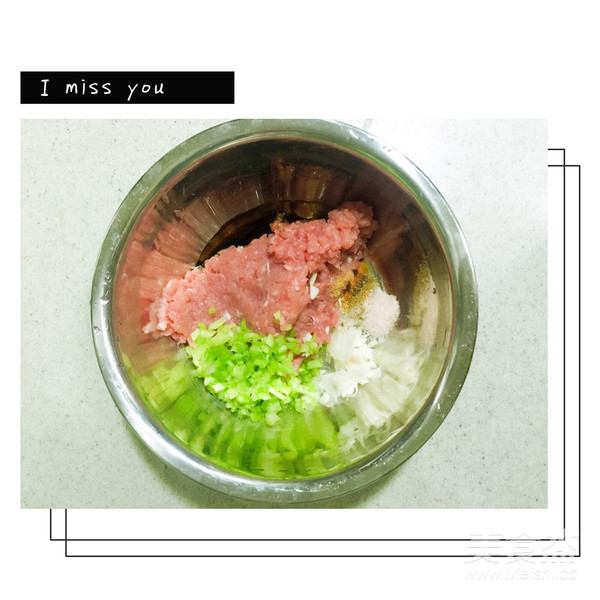 2.制作肉丸:里脊肉切成肉末,芹菜切小丁,蔥切成細細的蔥花放在盆里,倒入玉米油,生抽醬油,十三香,鹽