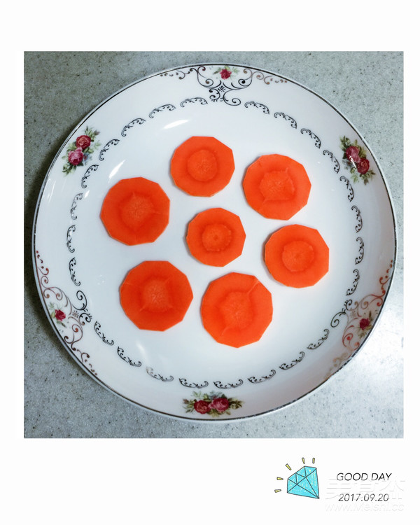 1.菜品均清洗好,胡蘿卜切片擺盤