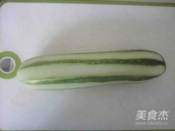 切去頭尾小部分,切成三段,再立起來(lái)切成盡可能薄的黃瓜片