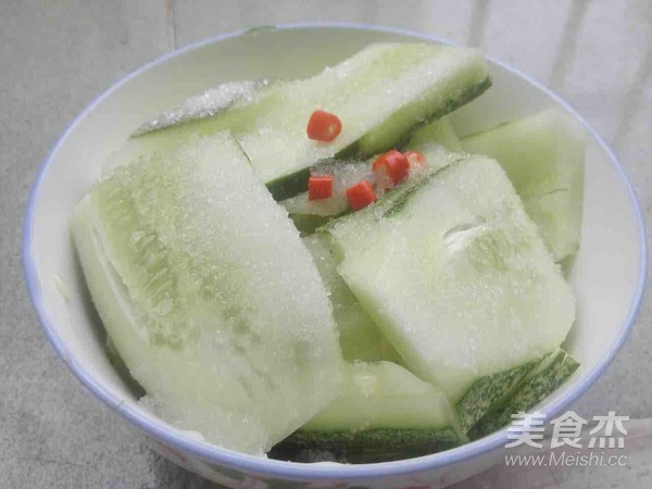 全部切成片狀,加入紅辣椒,再依次加入3湯匙白醋,3湯匙白糖,適量食鹽和雞精。攪拌均勻。