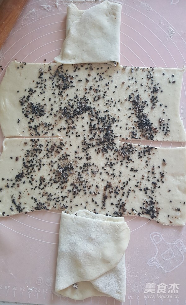 撒上適量的黑芝麻餡(黑芝麻、紅糖、面粉配成)