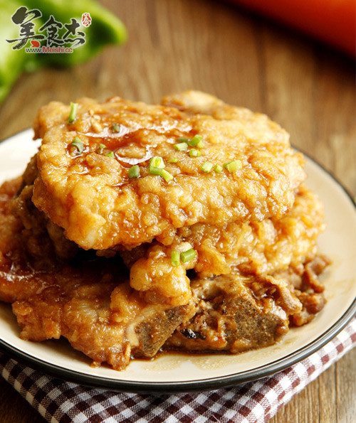 1.將洗凈的大排平放在案板上,用刀背將大排正反面上的肉剁松弛