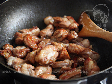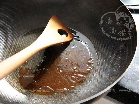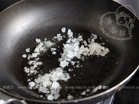 4.鍋里放一點點油,放入冰糖,用小火炒糖色,火一定要小