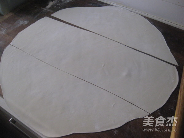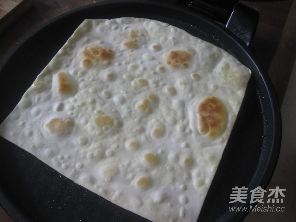 5.電餅鐺上刷油,熱后將大面片放入烙至兩面都上花即可,不可烙干。