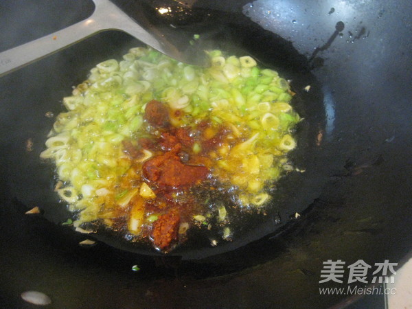 9.炒鍋熱鍋涼油,按順序,先下入蒜瓣,然后大蔥、羊油辣子。