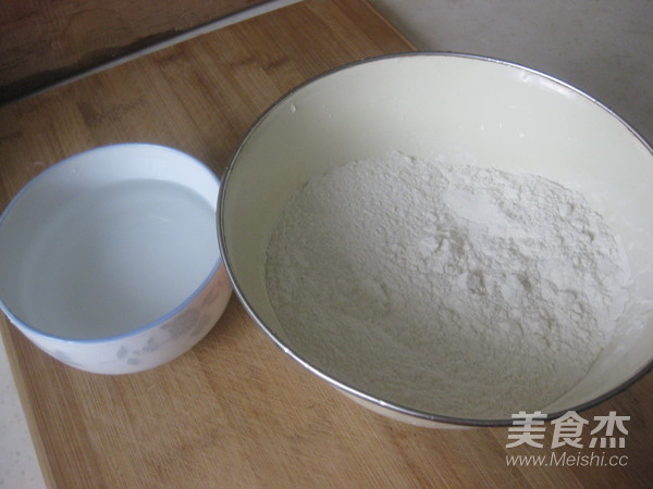 1.水一點點加入面粉中,邊加邊攪拌,全部成絮狀后揉成面團。