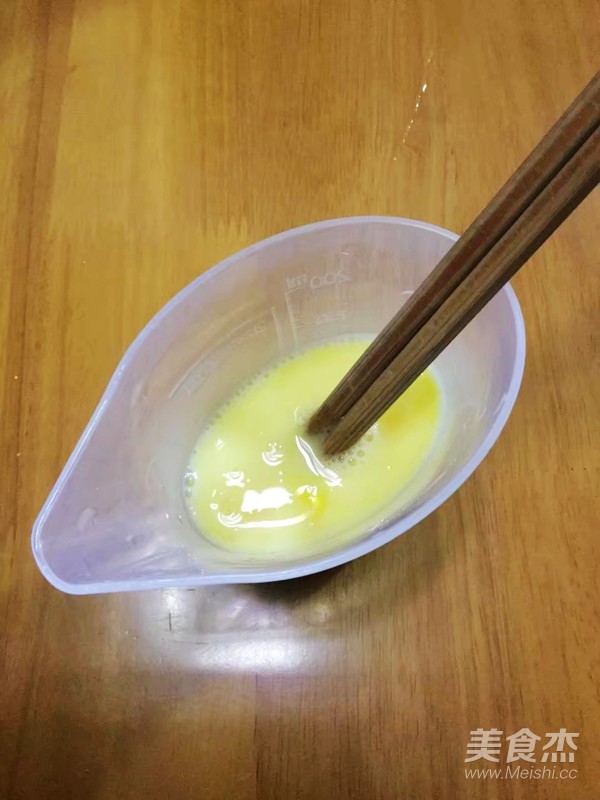 雞蛋打入量杯中,加入油和鹽
