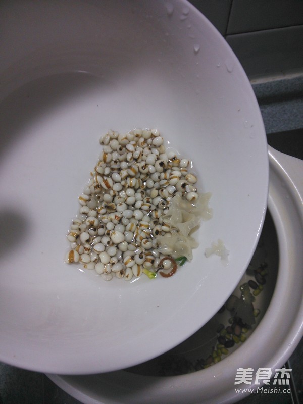 1.薏米比較難煮熟,砂鍋里面先放足量的水,下進(jìn)去薏米和提前一晚上泡開(kāi)的銀耳,紅豆和綠豆提前一晚上泡開(kāi),也下進(jìn)去