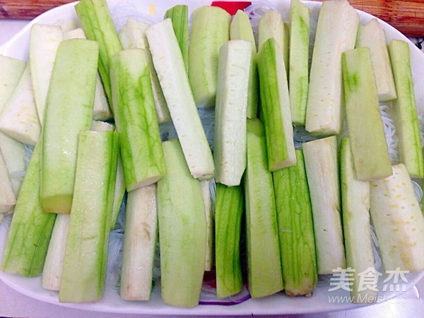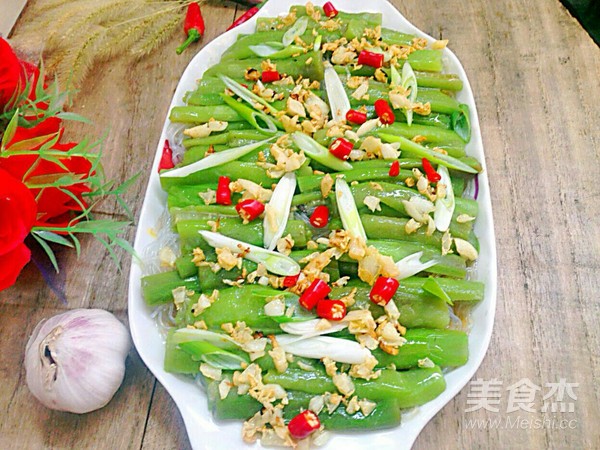 蒸好的絲瓜上放蔥花辣椒,把蒜油淋在上面,做好了!