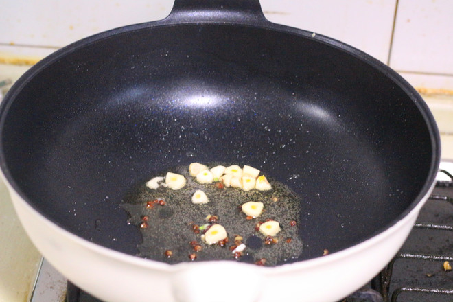 九陽(yáng)輕奢炒鍋里放入少許食用油,油熱后,加入花椒和蒜片煸出香味;