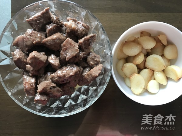 處理過的牛肉粒和蒜粒。