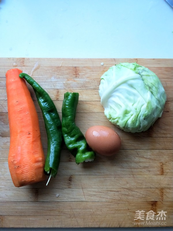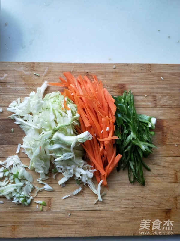 4.姜紅蘿卜,青椒,包菜,蔥切絲