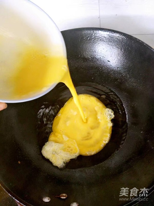 6.油溫升起放入打散的雞蛋