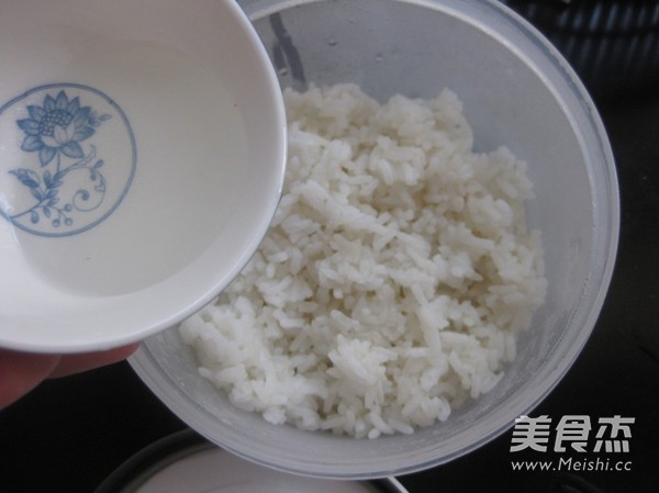 2.然后將壽司醋倒入溫?zé)岬拿罪埨锩妫瑪嚢杈鶆?/p>