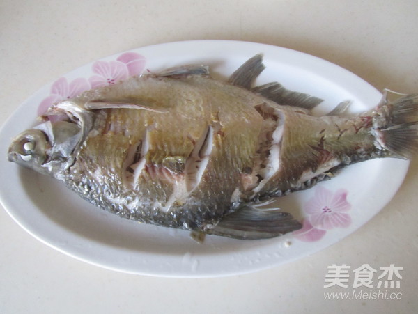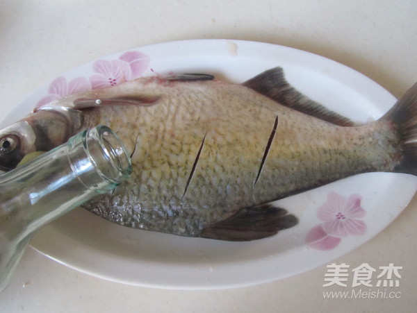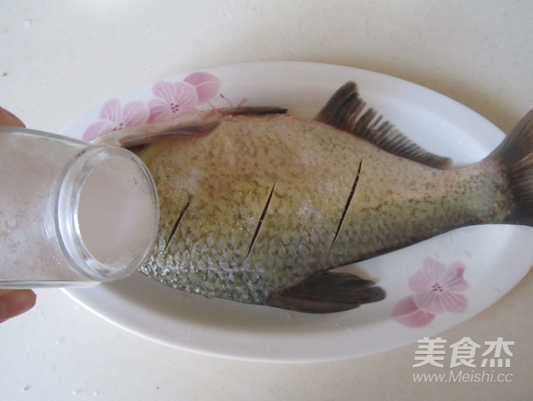 2. 將武昌魚表面劃上幾刀, 加入適量的鹽涂抹勻;