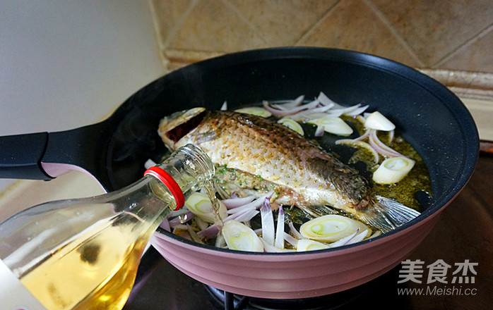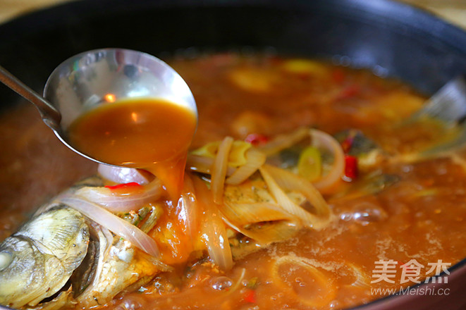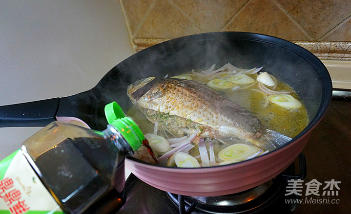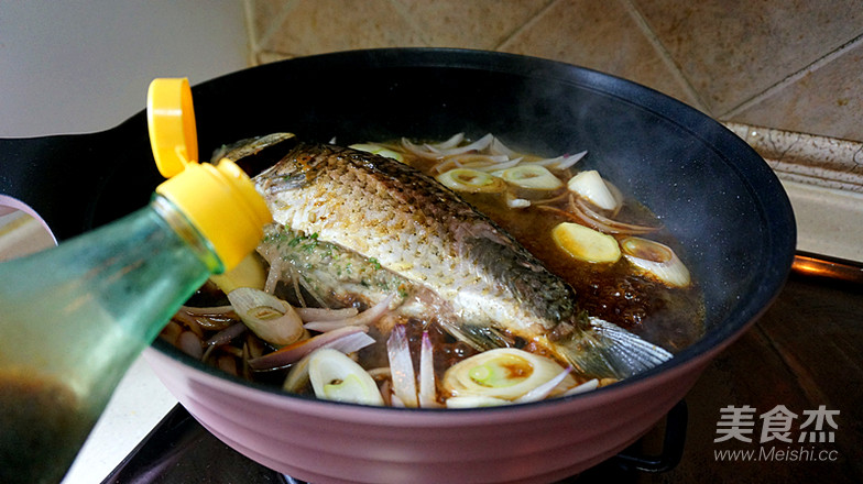 要時(shí)不時(shí)湯汁淋魚身,這樣色澤均勻,更入味兒