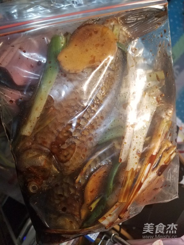 把魚跟所有腌漬的材料準入密實袋,擠出空氣,密封,然后輕輕的揉搓一下配料,放入冰箱冷藏至少半小時入味。