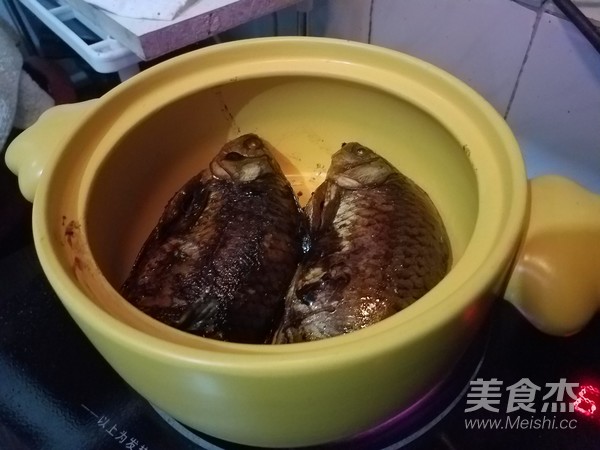 再準備好我們的砂煲,把煎好的鯽魚轉移進去。