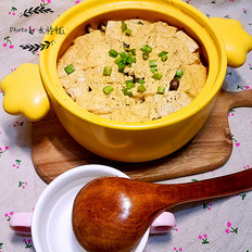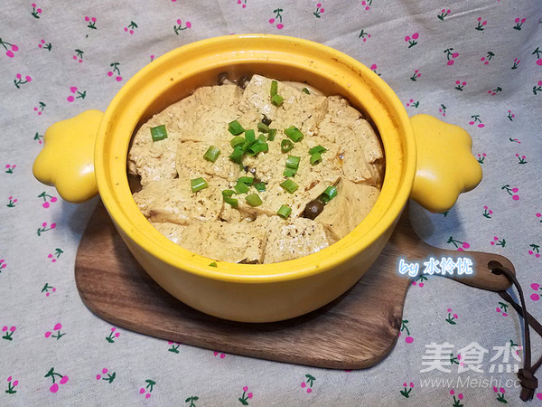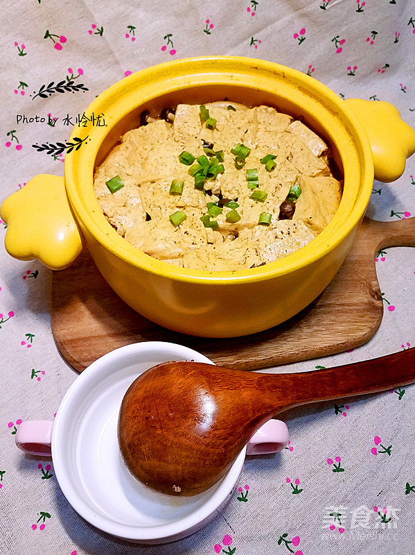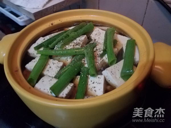 最后在上面鋪上豆腐片,一點蔥段,就可以蓋上蓋子,電陶爐中小火25分鐘左右即可,明火適當減少一點時間。喜歡重口可以表面撒點現磨胡椒粉。