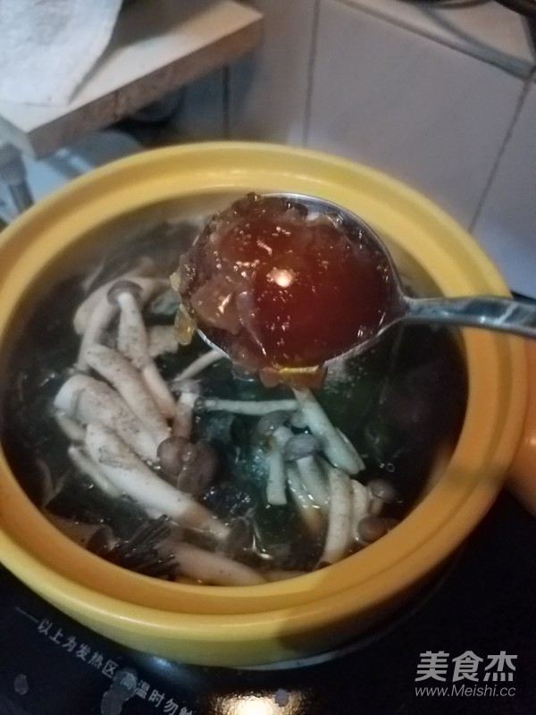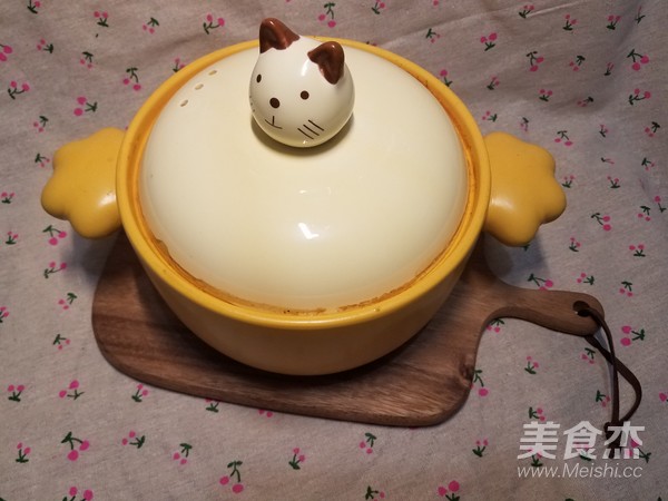 到時間后,取出表面的蔥段,撒上少許蔥花,就可以把我們的砂煲直接上桌了。