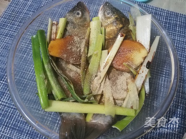 鯽魚去鱗、去鰓,去內臟,洗凈。不過霸王超市給的鯽魚是處理干凈的,直接沖水洗凈即可。