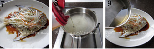 9.將熱油澆在蔥絲上,一定要聽到“滋啦”的響聲,即可