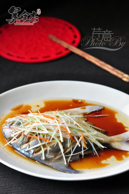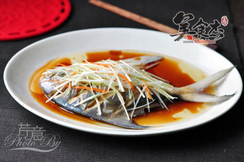 3.起蒸鍋,大火上汽后,放入鯧魚,加蓋,保持大火蒸5分鐘