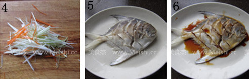 1.鯧魚洗凈,兩面斜打花刀,深及魚骨