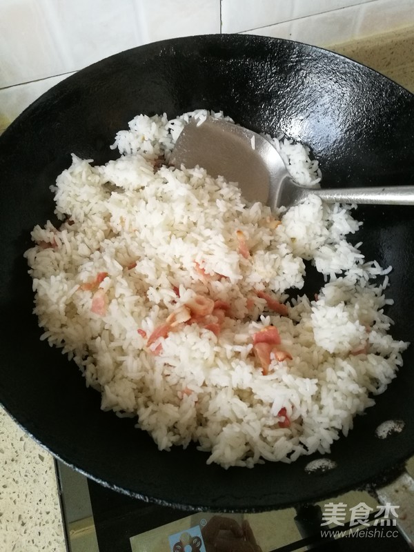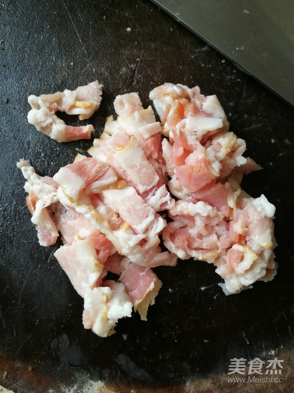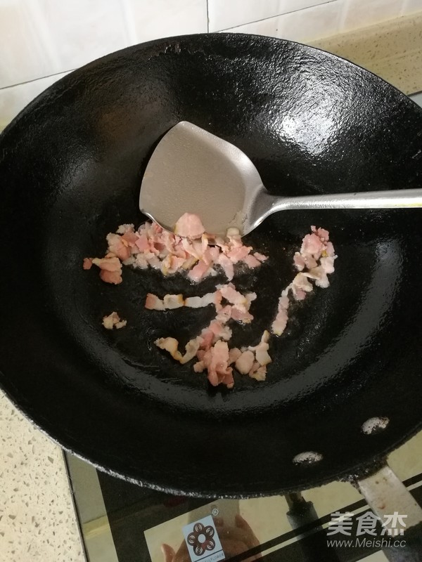 6、鍋燒熱,加少量油,培根中小火爆香。