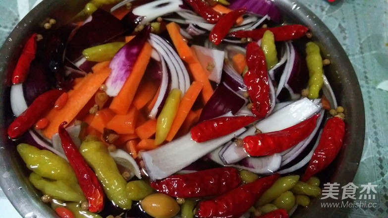 開水煮熟5-8分鐘,流水沖洗,浸泡。