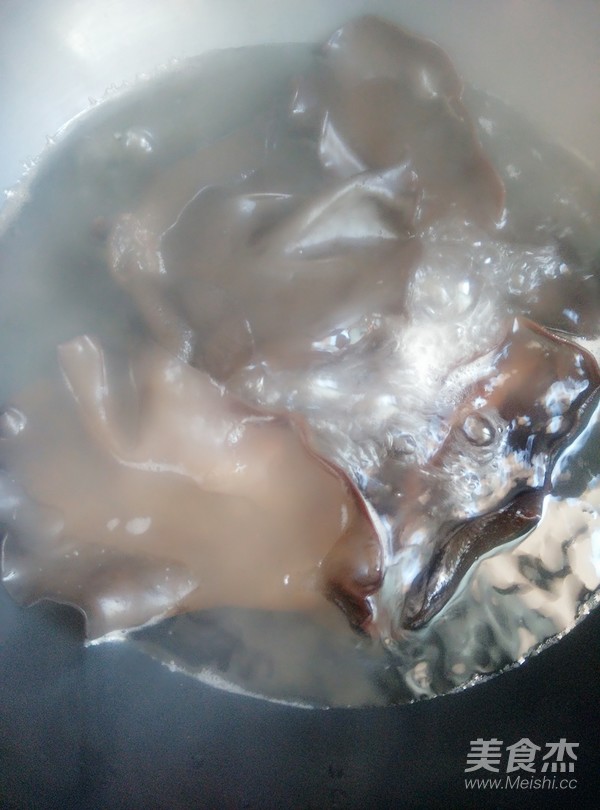 燒鍋開水,放木耳下鍋焯水一分鐘
