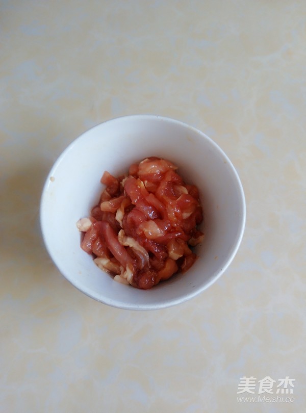 瘦肉切絲,放少許鹽、生抽、蠔油料酒抓勻,倒入少許花生油抓勻,腌制片刻