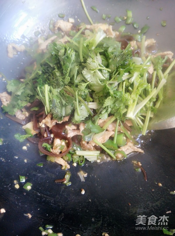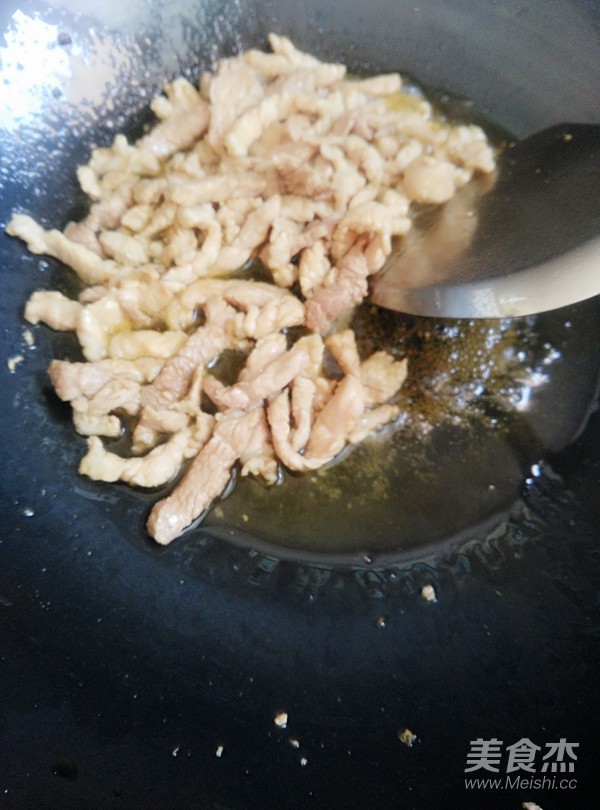 起油鍋,放入肉絲炒香后盛出