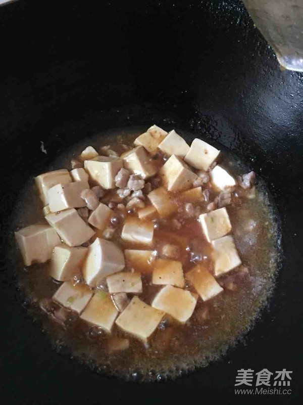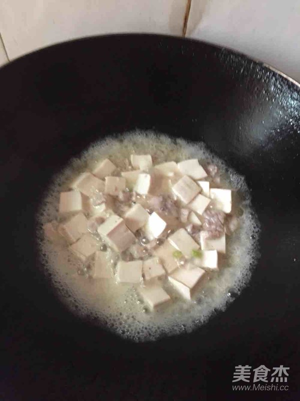 因為我們用的是嫩豆腐,所以翻動豆腐的時候一定要輕輕的,不然就全碎了
