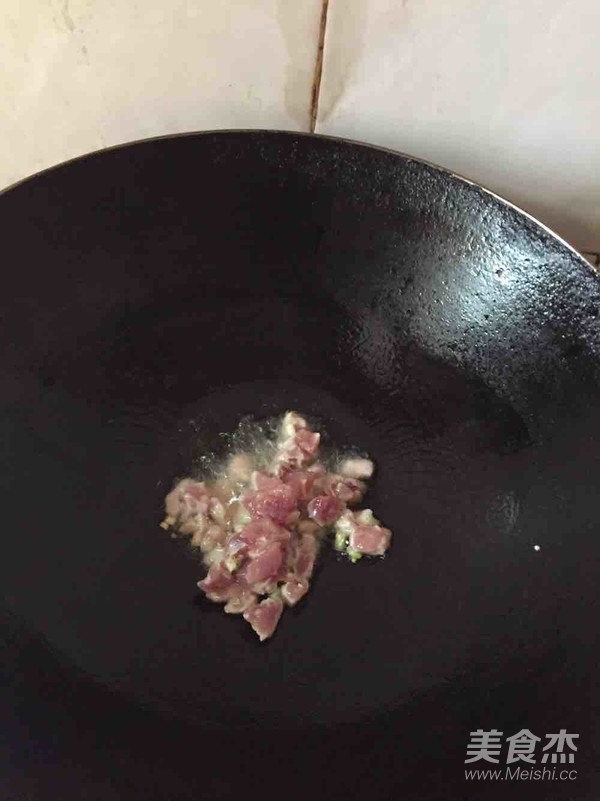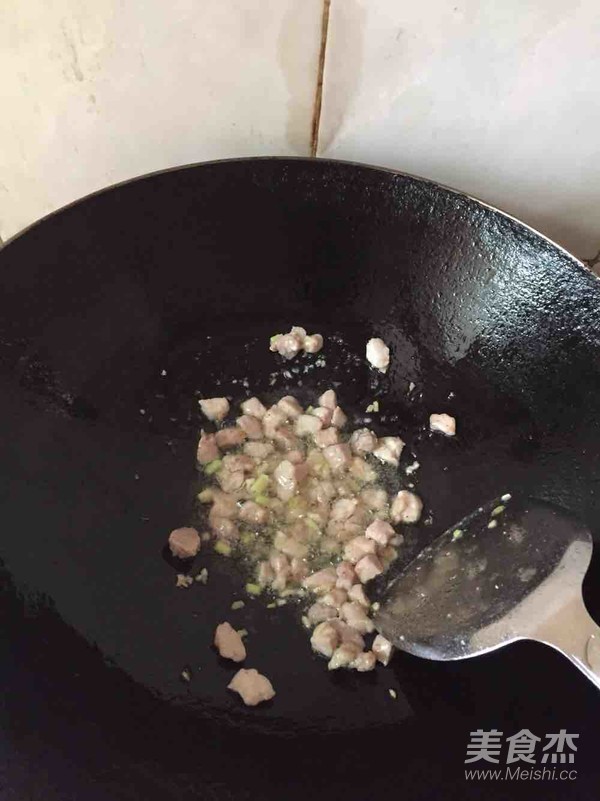 7.下入肉丁翻炒均勻