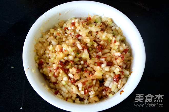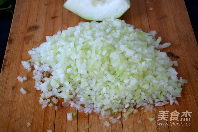3.將冬瓜切碎后攥去多余的水分,避免包完的餃子漏湯。