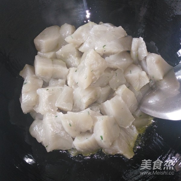 3.鍋里放適量油,可以比平時做菜多一點,倒入大粉