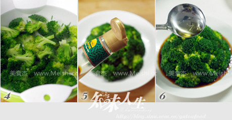 5.過涼后的西蘭花擺盤,倒入蒸魚豉油