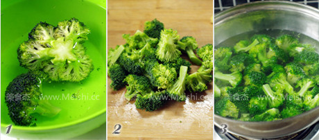 2.浸泡好沖洗干凈的西蘭花,切成塊
