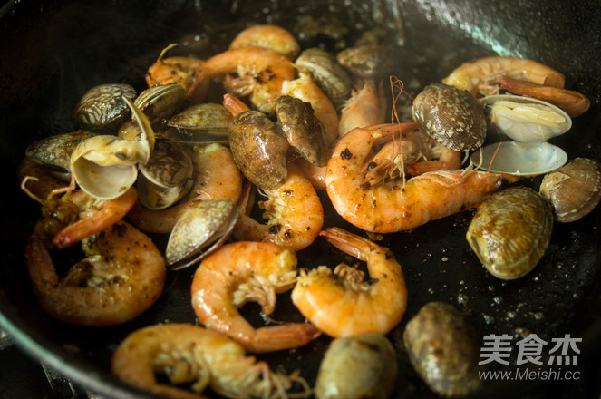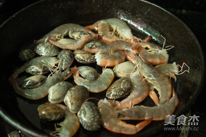10.另起一個炒鍋,放少許油爆炒蝦仁和花蛤